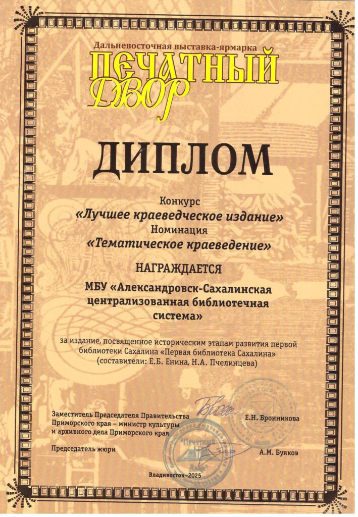 Александровск-Сахалинская модельная центральная районная библиотека им. М.С. Мицуля приняла участие в XXVI Дальневосточной выставки-ярмарки «Печатный двор-2025».
